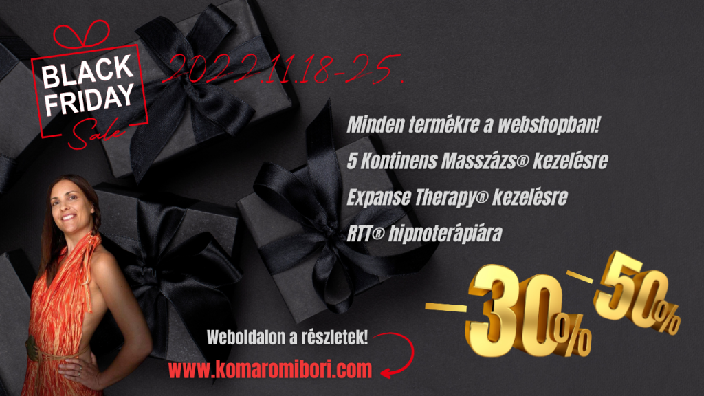 2022.11.18-25. között a megjelölt termékeket és kezeléseket 30-50% kedvezménnyel vásárolhatod meg! Nézz körül itt az oldalamon a webshopban és az egyéni lehetőségek/kezelések meünkben, és csapj le arra, ami a legtöbbet adná Neked! Adj minőségi időt magadnak vagy szeretteidnek akár Karácsonyra is! A kezelések 2023. január 31-ig beválthatóak!